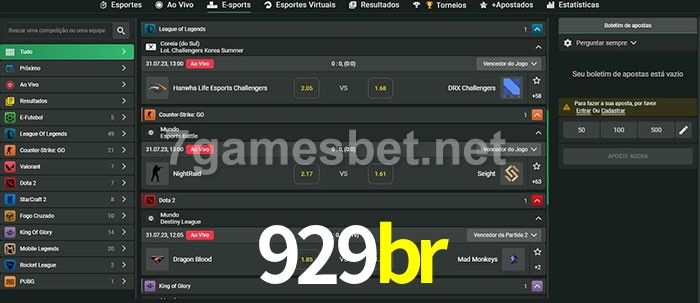 A aposta 929br oferece aos jogadores a experiência mais conveniente de apostas em eSports!